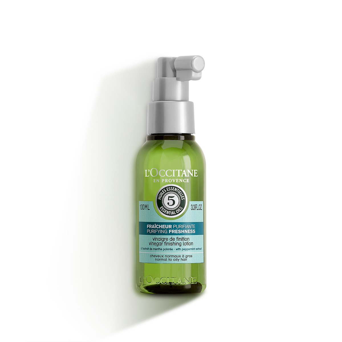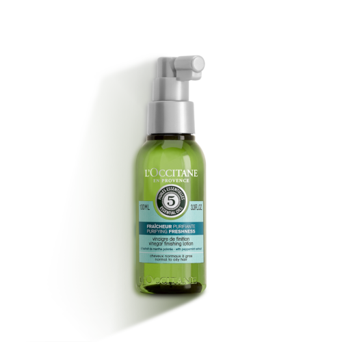 Со формула која не содржи силикони, овој оцетен лосион ја враќа свежината и сјајот од нормална до мрсна коса. Скалпот изгледа смирен со моментално чувство на удобност. Косата се чувствува лесна, лесна за расчешлување, свежа и сјајна. Нанесете мала количина (2-3 прскања) на чиста, исушена со крпа коса, од коренот до врвовите. Можете да нанесете и на сува коса помеѓу шампонирања, за освежување на косата. СКАЛПОТ СЕ ЧУВСТВУВА ИНТЕНЗИВНО ПОСВЕЖ, КОСАТА Е СВИЛЕНО-МЕКА И СЈАЈНА Микс од есенцијални масла комбинирана со состојки од природно потекло, познато по освежувачките својства, за единствано армоатско искуство и подобрена ефикасност: * 5 есенцијални масла: мента од Прованса, мајчина душица, грејпфрут, лаванда и бор. * растителен оцет: познат по својства кои даваат сјај на косата * ментол: обезбедува интензивна свежина